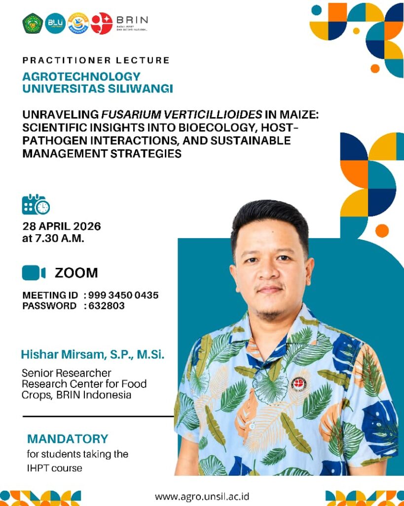 TASIKMALAYA – Program Studi Agroteknologi, Fakultas Pertanian Universitas Siliwangi akan menyelenggarakan Kuliah Pakar (Practitioner Lecture) secara daring pada hari Selasa, 28 April 2026. Kegiatan akademik ini ditujukan untuk memperdalam wawasan mahasiswa mengenai tantangan penyakit pada tanaman pangan, khususnya komoditas jagung.